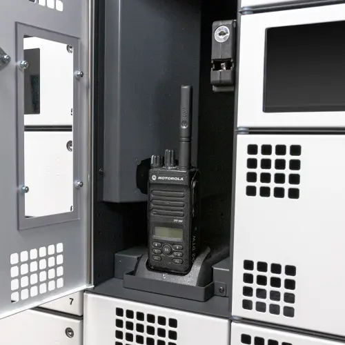 Des chargeurs peuvent également être intégrés dans le casier pour que les radios soient toujours disponibles et opérationnelles.